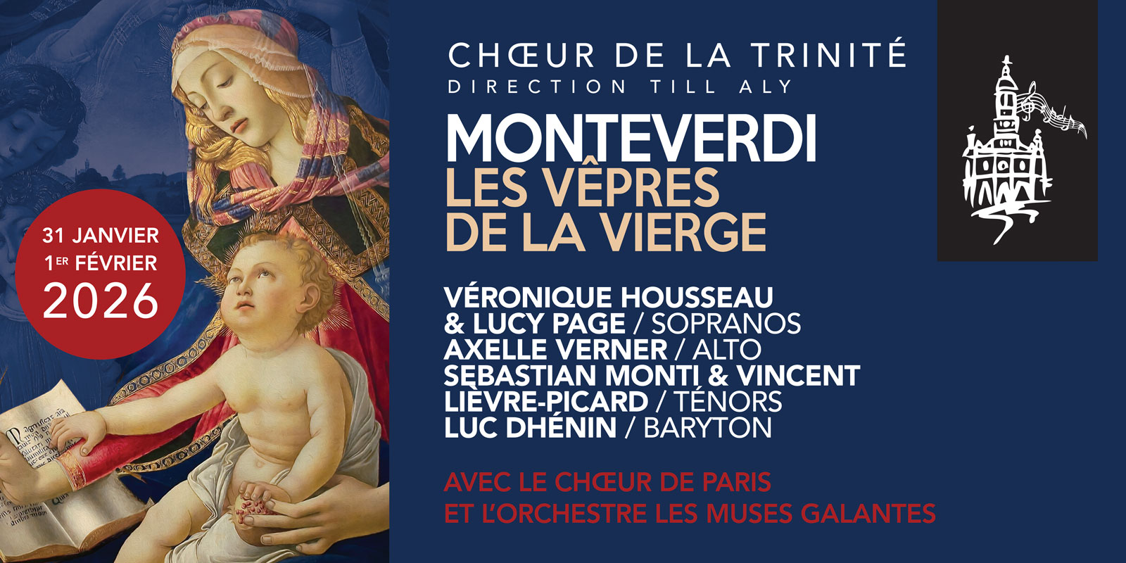 Les Vêpres de la Vierge de Claudio Monteverdi Samedi 31 janvier 2026 à 20h30 Dimanche 1er février 2026 à 15h, Église Saint-Roch